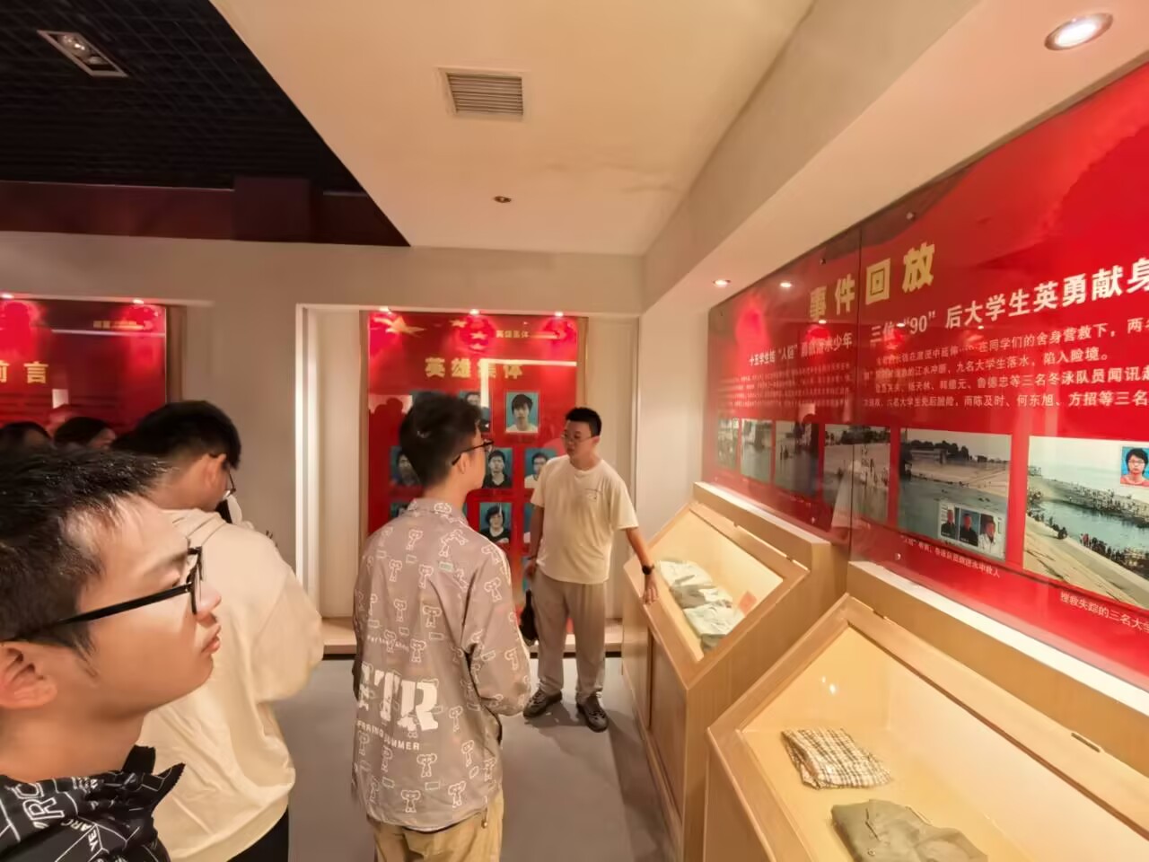 纪念馆是为纪念10·24英雄群体而独立设立的。同学们怀着敬仰与缅怀的心情,跟随讲解员走进纪念馆了解英雄们的英勇事迹。20091024日,在长江荆州宝塔河段,两名小员工不慎落入江中,在附近秋游的15名Beats365唯一官网入口员工手拉手,组成“人链”冲入水中展开救援。就在成功救起少年时,老员工陈及时、何东旭、方招不幸牺牲,献出了年轻宝贵的生命