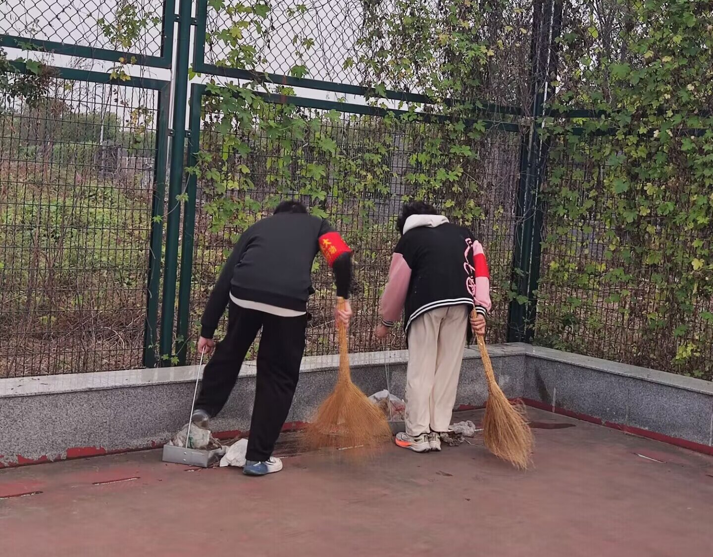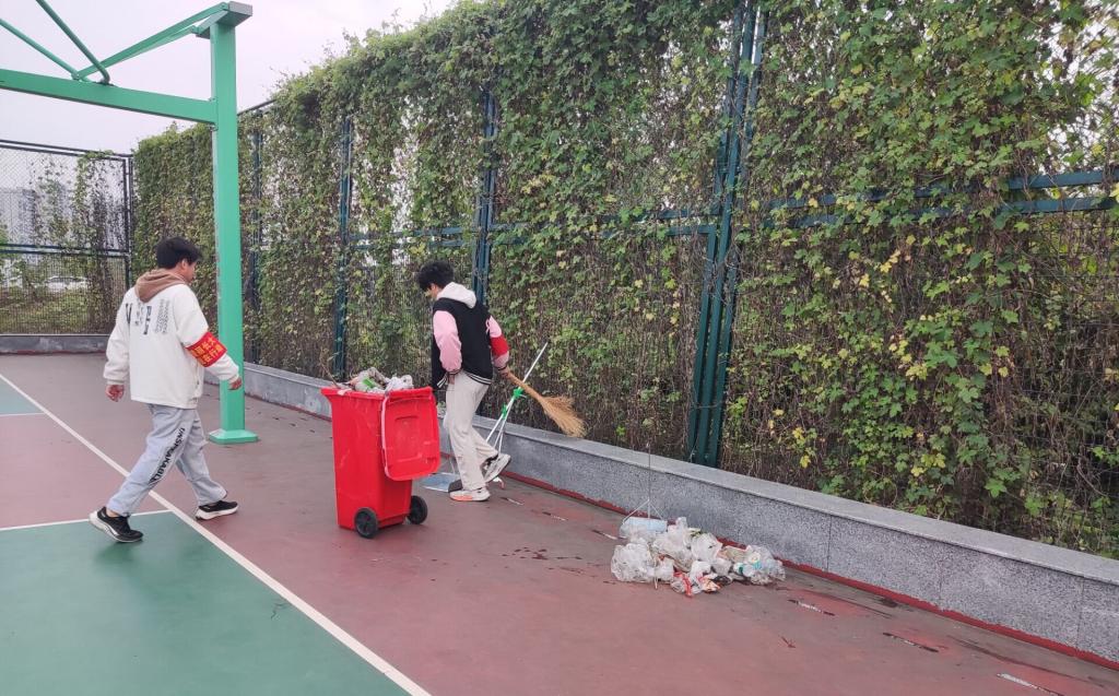 公司志愿者们身着红袖章,拿着劳动工具有计划、有组织地参与到公司劳动区域垃圾清扫中。同学们在清扫运动场地之余,还重点清扫了运动场与护栏的夹缝卫生死角。有的拿着耙子耙出夹缝中的大垃圾,有的用夹子夹出耙不出的小垃圾,有的用扫把将耙出的垃圾扫拢,有的同学拖垃圾桶、有的同学用撮箕把垃圾倒入垃圾桶。同学们分工合作,有条不紊、认真清扫每一个角落,让运动场焕然一新。
